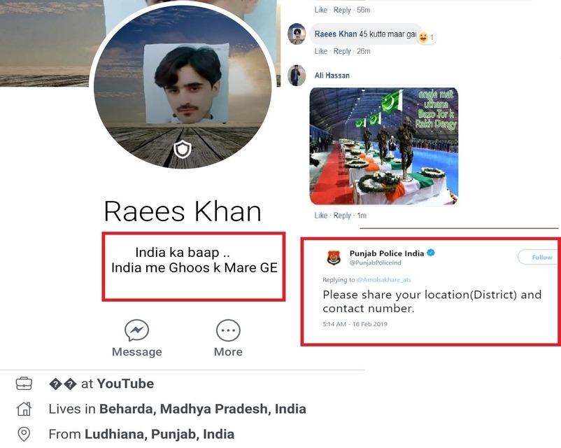 16. लुधियाना में रहने वाले रईस खान ने फेसबुक पर धमकी भरे पोस्ट डाले, इसके बाद पंजाब पुलिस उसकी खबर ले रही है।