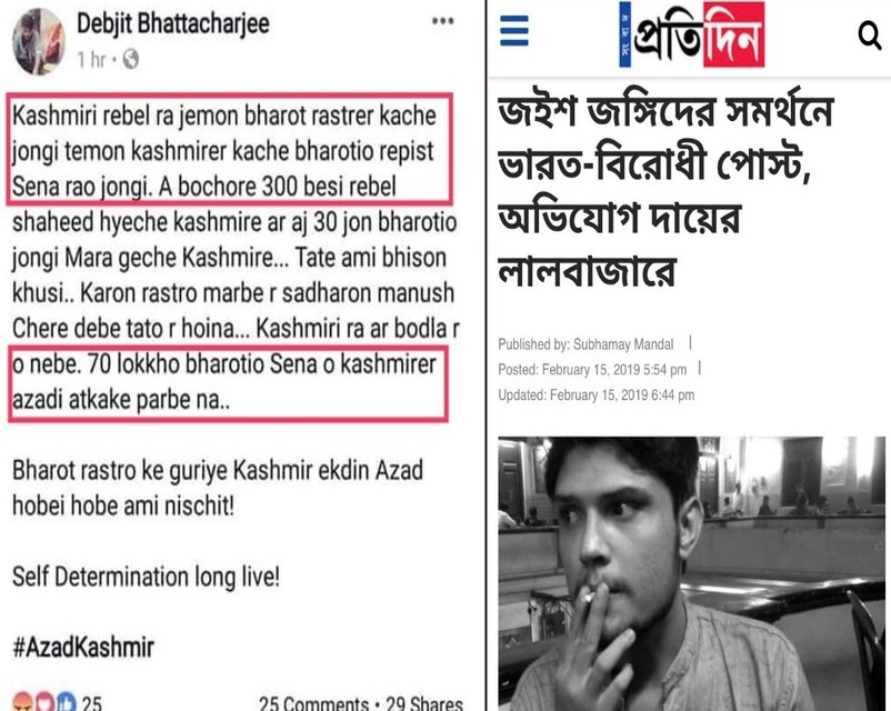 9. पश्चिम बंगाल के देबजीत भट्टाचार्जी ने बंगाली में (रोमन लैटर में ) कश्मीर में अलगाववादियों का समर्थन किया। इसके लिए देबजीत पर एफआईआर दर्ज कर दी गयी है।